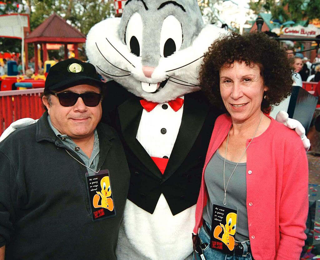 In 1999, the park hosted a huge celebrity-filled bash. It gave proceeds to Comic Relief and to the Comprehensive Childhood Diabetes Center at Children's Hospital Los Angeles. Here is Bugs with his pals Rhea Perlman and Danny Devito at the event.