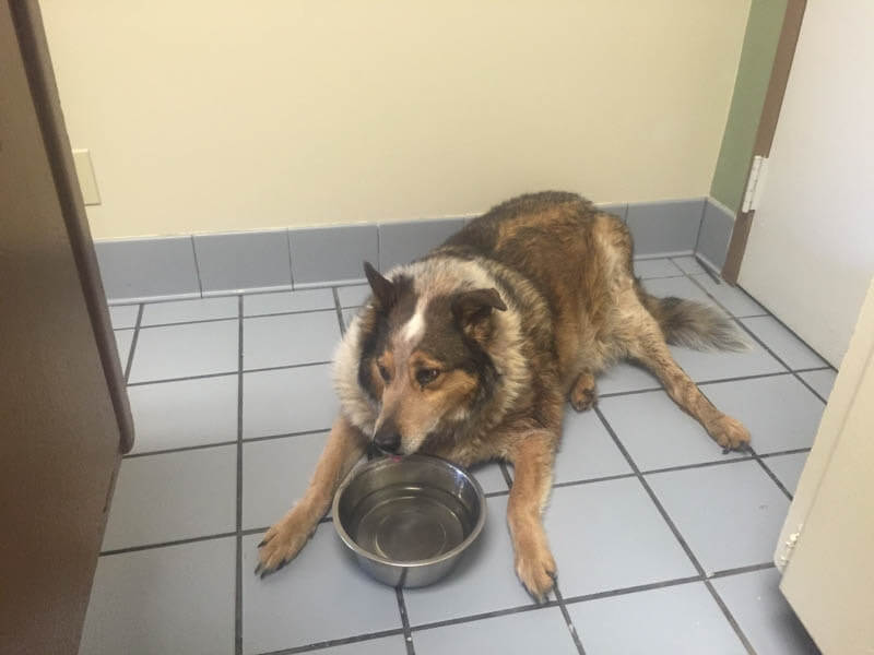 Jim dialed up the Oklahoma Alliance for Animals (OAA) and the team worked quickly to get Teddy into their care. The team was warned that they would have their work cut out for them.